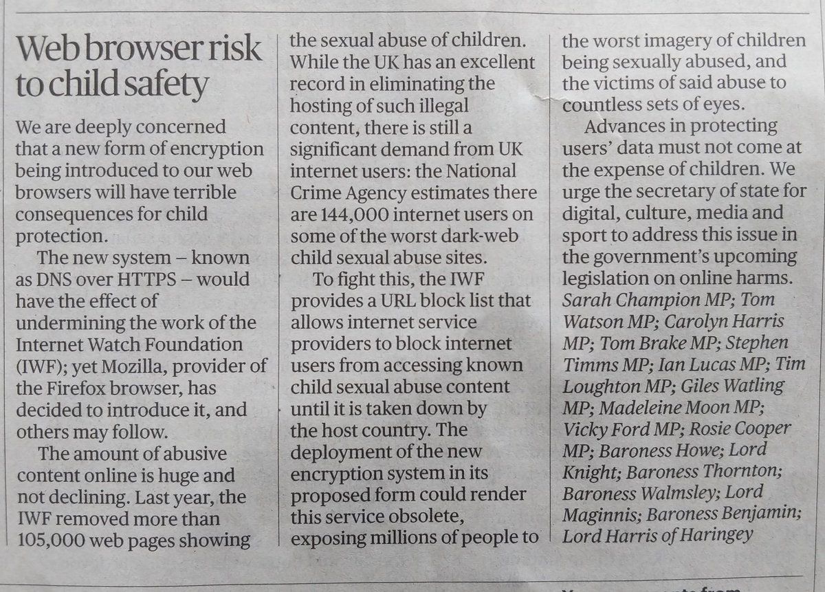 : UK politicians disapprove of DNS over HTTPS (DoH)