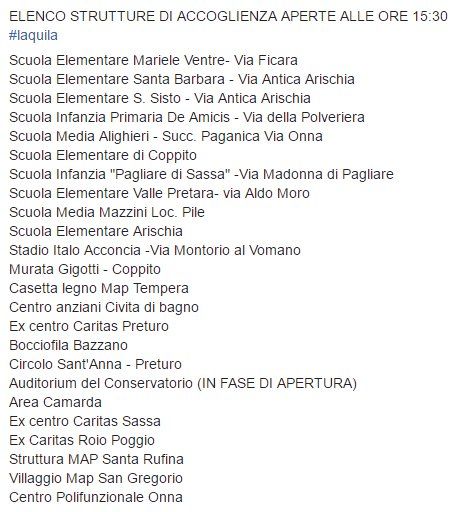 : #terremoto elenco strutture di accoglienza l' #aquila RT